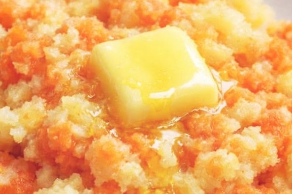 Spoon the carrot and potato mash onto a warm plate or into a shallow bowl. Top each serving with a small extra pat of butter so it melts and pools into the warm vegetables before serving.