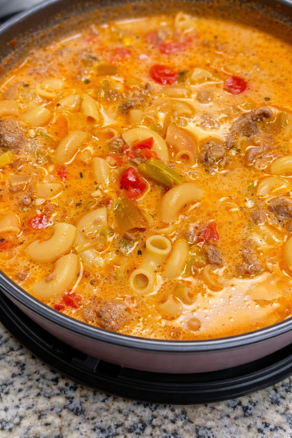 - Add the macaroni and cook for another 10–12 minutes, stirring occasionally.