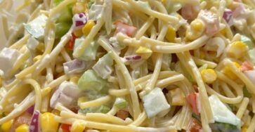 Confetti Salad 🎉 There’s just something special about a creamy pasta salad—it’s nostalgic, refreshing, and always a hit at potlucks…